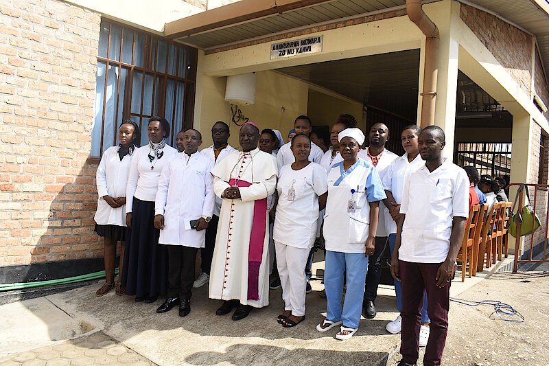 The Director General and other staff members of Kabgayi Hospital pose for a memorable photo